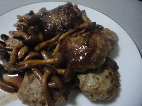 材料 ( 2-3人分 ) ひき肉 250g タマネギ 半分をすりおろす パン粉 1カップ 卵 1個 コショウ・ナツメグ 適量 赤ワイン 50cc ウスターソース 50cc シメジ 半パック 1 ボールにパン粉と卵を入れて混ぜ合わせます。 混ざったらひき肉とタマネギを入れ、こねます。 コショウ・ナツメグを振ります。 2 ひき肉に弾力が付いてきたら、こね終わりです。 好みの大きさの小判型に丸めていきます。 3 熱したフライパンに油を引いて、まずは強火で片面焼いていきます。 4 軽く焦げ目が付いたらひっくり返し、水を50cc加え、蓋をして弱火にします。 5 水が蒸発して、乾いた音になりはじめたら、蓋を取って強火に。 残った水分を飛ばしてしまいましょう。 6肉に箸などを差してみて、肉汁がたくさんでてきたら完成です。 7 最後にソース。 肉を焼いたフライパンでそのまま、しめじを炒めて、赤ワイン・ウスターソースを入れ、煮詰めるだけ。 にほんブログ村 |