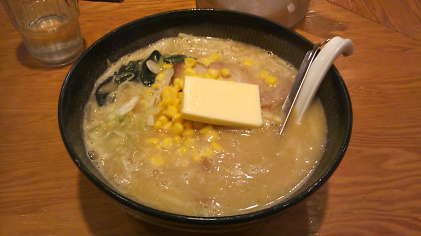 このあたりはラーメン屋さんがたくさんあります。 ちょっと制覇してみようと思って。 札幌ラーメンということで、推しは味噌ラーメンみたい。 元気のいい店員が食券機の前で大きな声でオススメを教えてくれます。 正直、元気すぎる店員は苦手です。 うるさい。 そんな近い距離で大声出されたら逆に聞きとれません。 元気が良ければ良いと思ってないかな…。 しかし、一番のオススメと言う味噌バターコーンを頼みました。 ま、おいしそうだしね。 名前の通り、味噌ラーメンにバターが乗っかっててコーンがたんまり入ってます。 レンゲと一緒に、コーン用の穴あきレンゲが付いてました。(←個人的にはいらない。邪魔なだけ。) バターの匂いが良い感じ。 味にも期待…でしたが、何か薄い。 味噌ラーメンって、こんなにアッサリしてたっけ?と思いました。 バターでようやくコッテリさせてる。 ちょっと残念な感じがしました。 あと、ワカメがいらないです。 あいません。 ワカメとバター、ワカメとコーンはあわないです。 リピーターにはならないかな。