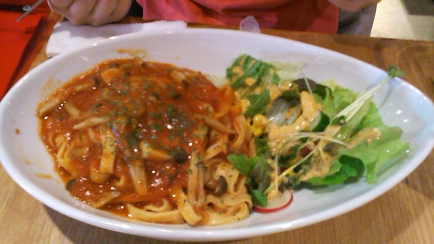 豊田市駅の西口にある、猿カフェというカフェでランチしてきました。 うっかりしたことに、また外観を撮り忘れました。。。 この猿カフェですが、もともとは名古屋で有名な店みたいです。 が、愛知に住んで4年目のクセに名古屋に疎いワタクシは知りませんでした。 猿ロック猿ロック言ってました。。。 お店の雰囲気は昼間はカフェ夜はバーって雰囲気。 プロジェクタが1つと液晶テレビが2つあって、 そのときはトムとジェリーのDVDがかかっていたけど、 きっとW杯とかオリンピックとかのときは スポーツバー感覚で盛り上がるんじゃないでしょうか。 ランチメニューは全部で4種類。 日替わりプレートと日替わりオムライスと、 エビとキノコのスパゲティにアボガドタコライス。 エビとキノコのスパゲティと、日替わりオムライスを頼みました。 エビとキノコのスパゲティ。 エビ嫌いなのでちょっとしか食べてないけど、エビの匂いプンプンでした。 でもエビの実自体はちょっぴりしかなくて、物足りない人には物足りないかも。 日替わりオムライス。 日替わりって言うくらいだから、毎日違うんだろうけど、 こんなに卵がフワフワしたオムライスを食べたのは初めてでした。 クリームもウマいし、中のライスがなんとツナライスでした。 色々な点で良い方に裏切られて良かった!! ランチメニューはどのメニューも750円か800円でドリンク付きです。 スープもサラダも付いてるし、見た目よりおなかいっぱいになるし、安いと思います。 さらに150円をプラスでデザート(日替わりだったかな?)を付けられます。 隣の人が食べてるの見たけど美味しそうだった。 今度は夜にスポーツイベントがあるときに行ってみたいなー。 にほんブログ村 |